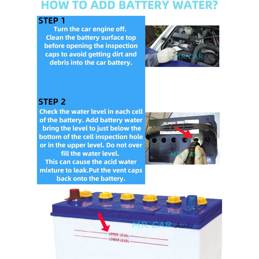 Dip a rag into the mixture and lightly scrub down the entire outside of the battery. About press copyright contact us creators advertise developers terms privacy policy & safety how youtube works test new features press copyright contact us creators. This one was just about checking the level and using the proper devises to add distilled water if needed. This will neutralize corrosion and any battery acid that may be on the battery. The proper method recommended by most battery manufacturers is to add enough water so that the cell plates are completely submerged, but not so much that the water is up to the battery case cell cap vents. This can help you avoid underwatering or overwatering the batteries, both of which can cause damage to them as mentioned above. No removing of vent caps, no fumbling with flash lights to check the water level in the battery. Simply some baking soda and water on a flat dish, making sure that there's just enough water to make a paste. It will not be able to be charged as effectively as it would be with the previous distilled water to acid ratio. About press copyright contact us creators advertise developers terms privacy policy & safety how youtube works test new features press copyright contact us creators. The general suggestion is to ensure that the water is above the battery plates by only a quarter to half an inch. Battery water level indicator from flow systems allows the battery owner to instantly see how much water is in the battery using the battery level indicator. Start the car to ensure the battery is working.